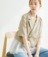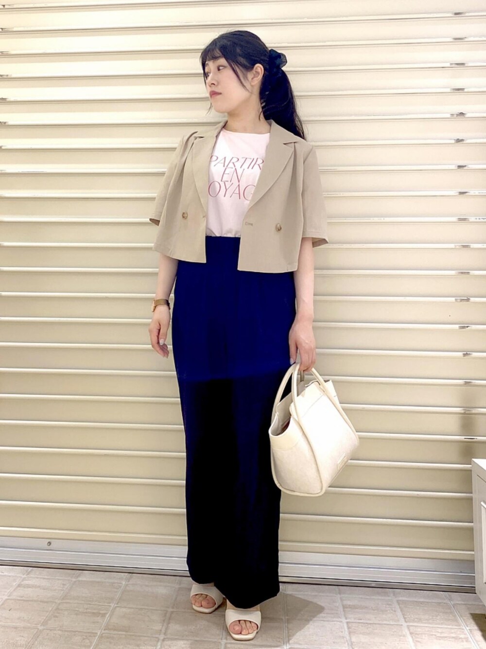 さらっと涼しいクロップドジャケットです。 インナーにピンクのロゴTを合わせて 可愛さをプラスしました。