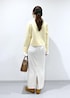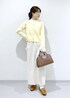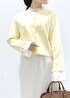 1枚でレイヤードスタイルが叶う ドッキングカーデです。 春らしい優しいイエローは 気分を明るくしてくれます。