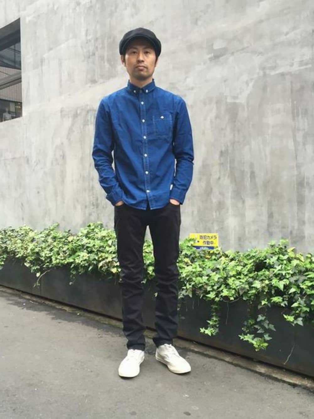 あおもり藍で染めたボタンダウンシャツをシンプルに合わせました。