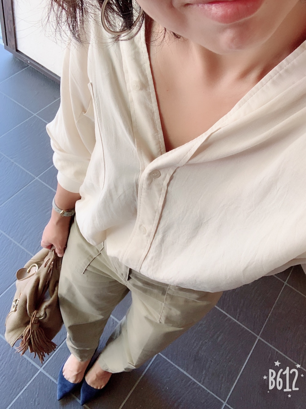 今日はお天気であったかいので サラッと身軽なコーデ。 ほぼベージュのワントーンをパンプスのネイビーで締め。 最近シンプルな服が多いので、 存在感のあるリングが欲しいなーと思ってます。
