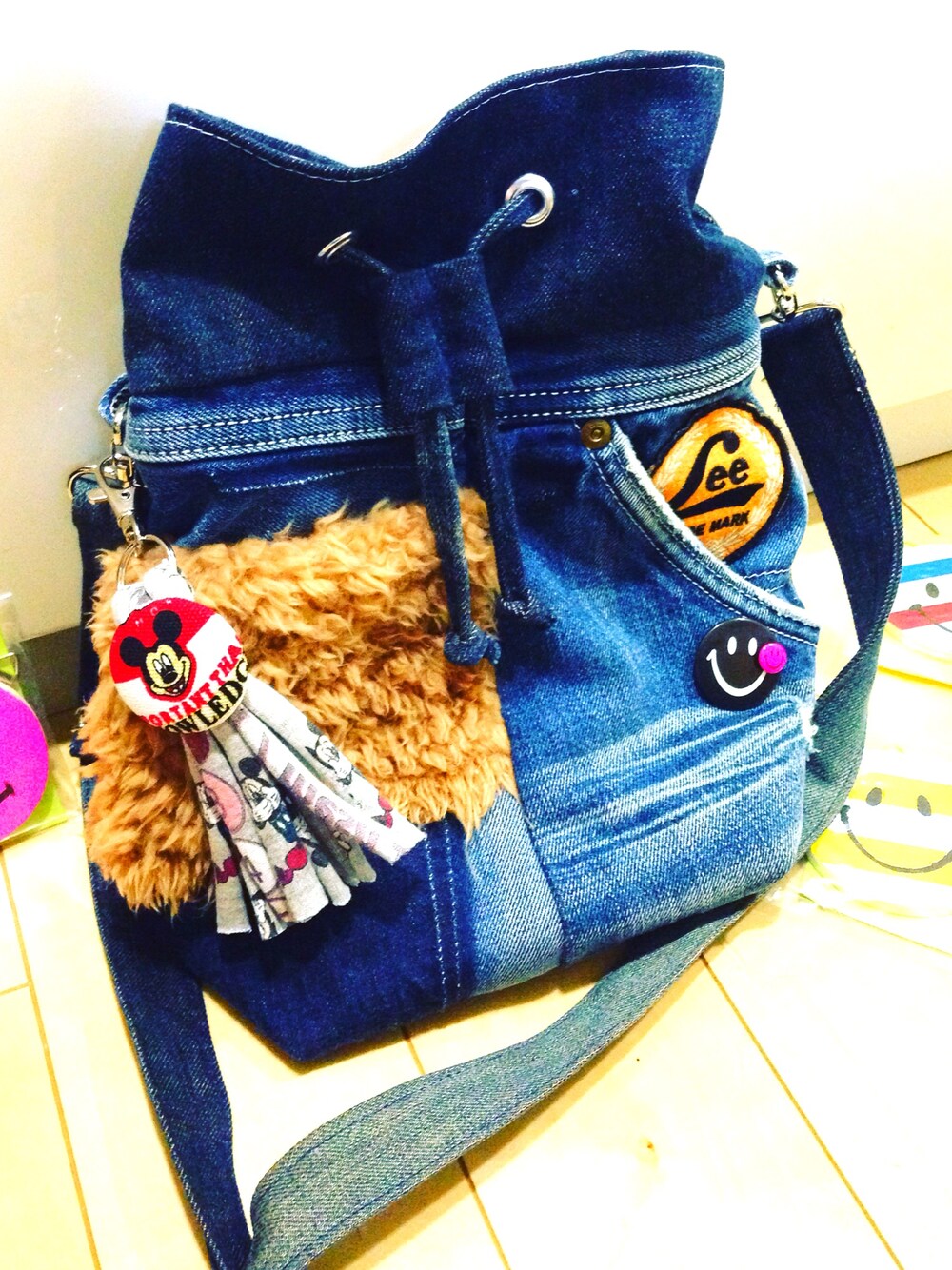 コーデじゃなくごめんなさい🙈 インスタでハンドメイドデニムバックを購入👯👯👯 パッチワーク風なんでいろんな顔をしてくれる。大好きなアイテムです❗️
