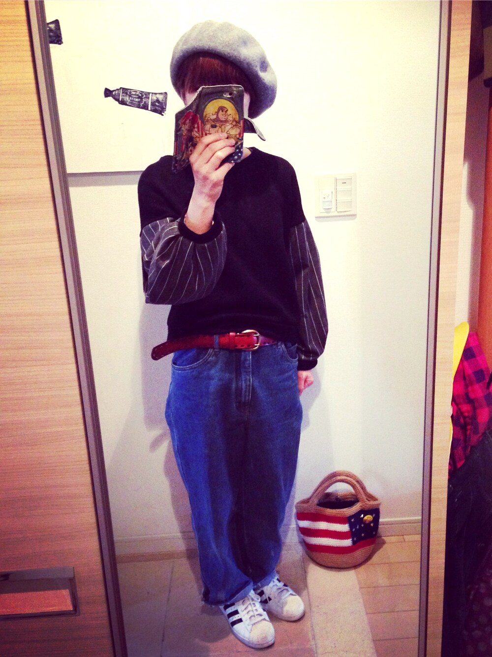 キノコのスウェットを使ったコーディネート