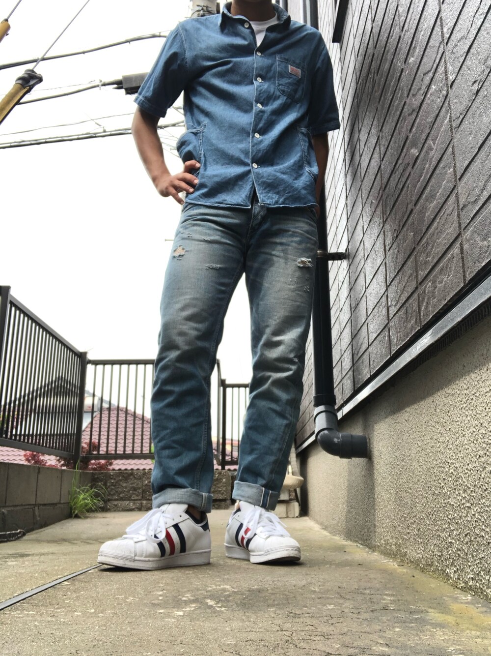 こんにちは😃 初投稿です 今日はシンプルな感じに仕上げました デニムは少しロールアップして軽めな雰囲気にしてみました 白シャツが見えるようにボタンを1つ外したところがポイントです いいね👍 コメント よろしくです〜
