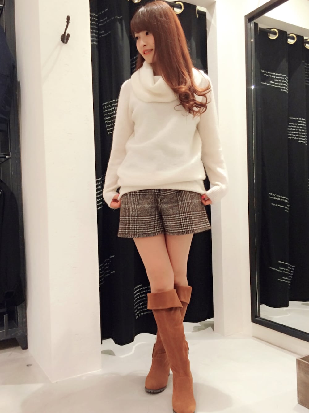 ニット×ショーパンの 楽チンコーデです♡ ブーツも軽いので 長時間のお出かけにも ピッタリです*