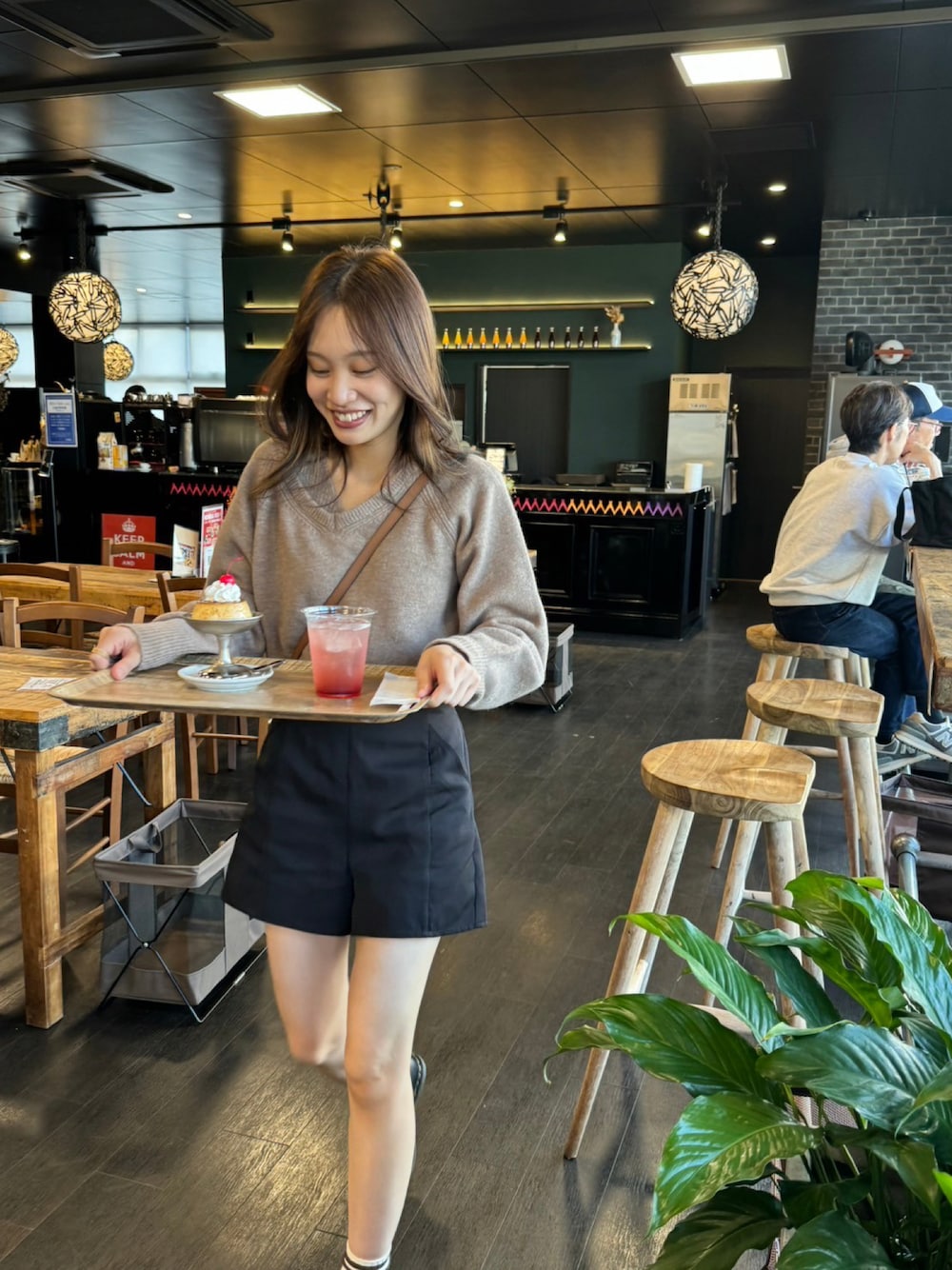 IKEAのトートバッグで挑んだ泊まりでした。 この時の最重要事項は ・シワにならない ・かさばらない Tシャツ、スラックスにするとシワになるし かと言ってデニムってなるとかさばるし そんな中選ばれたコーデがこれでした🫡 (靴下は忘れて現地調達🧦可愛いのがあったんだ🫶🏻) プリンでワクワク溢れてる🍮