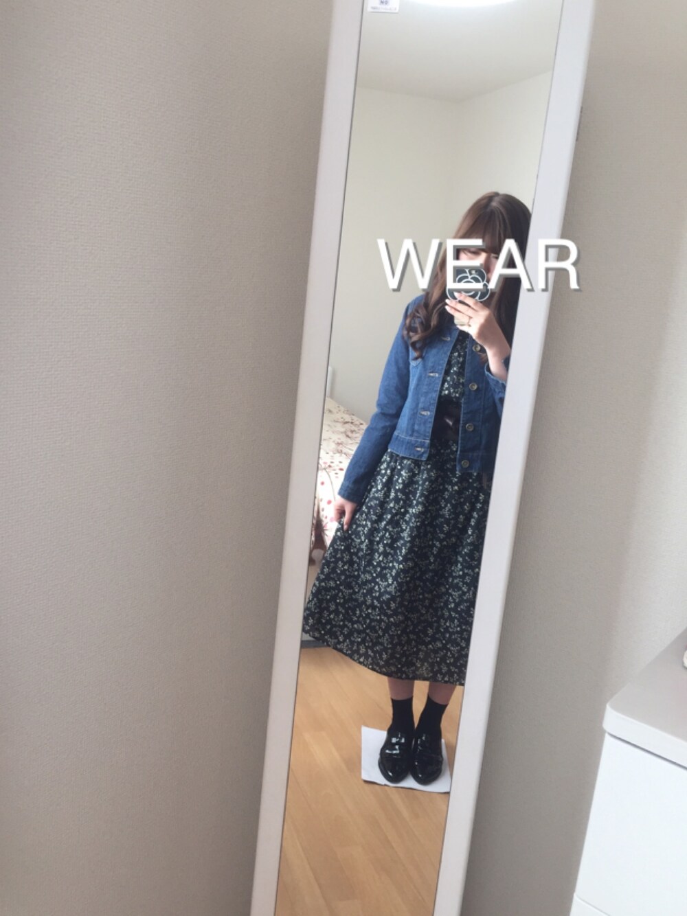 denim jacket•••Green Parks onepiece•••Green Parks belt•••しまむら socks•••靴下屋 shoes•••ORiental TRaffic pierce•••LOWRYS FARM necklace•••ete watch•••HAMILTON