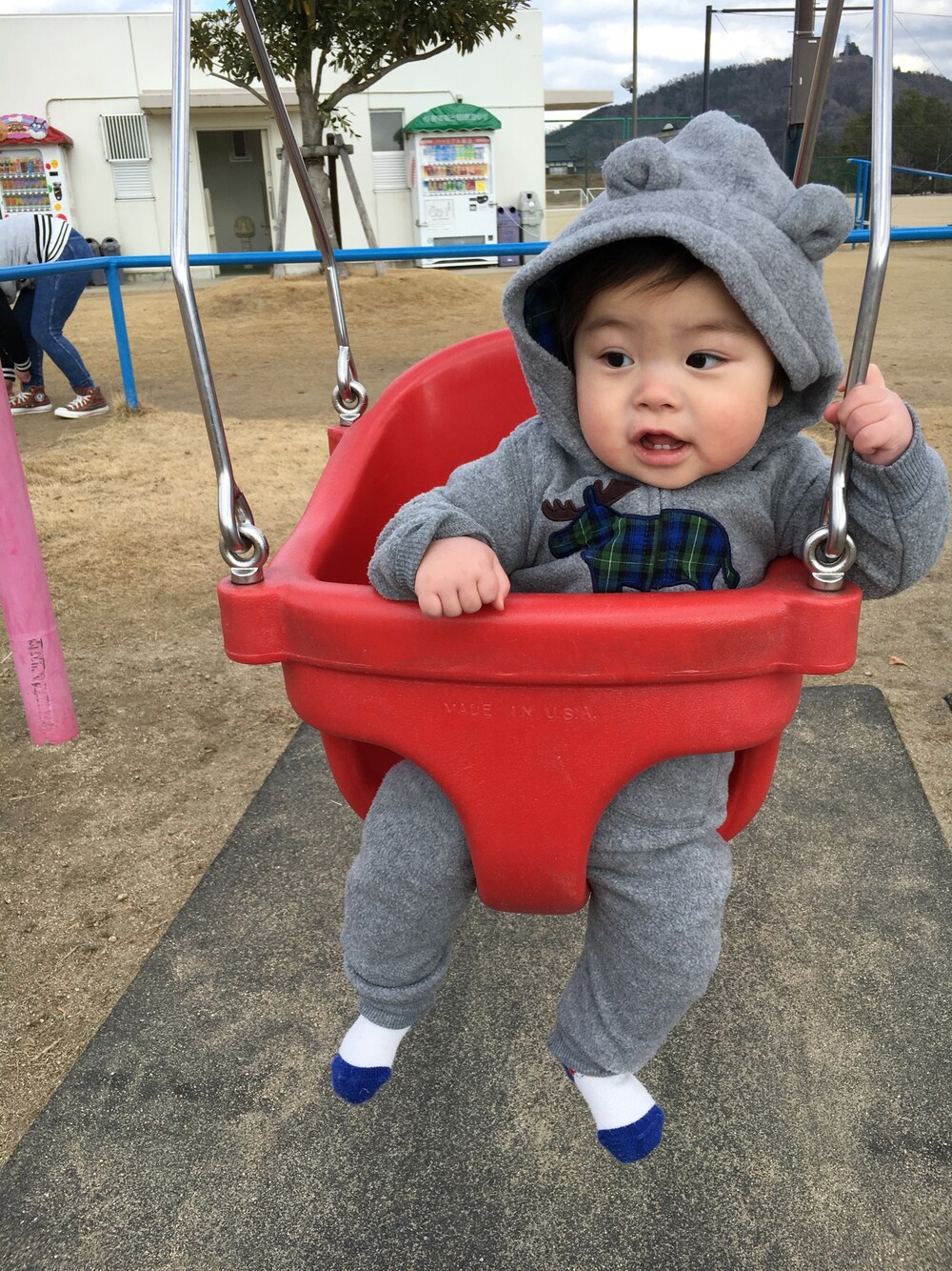 ブランコ初体験♩ こちらのカーターズ、プチプラなのに暖かくて可愛くてオススメです!