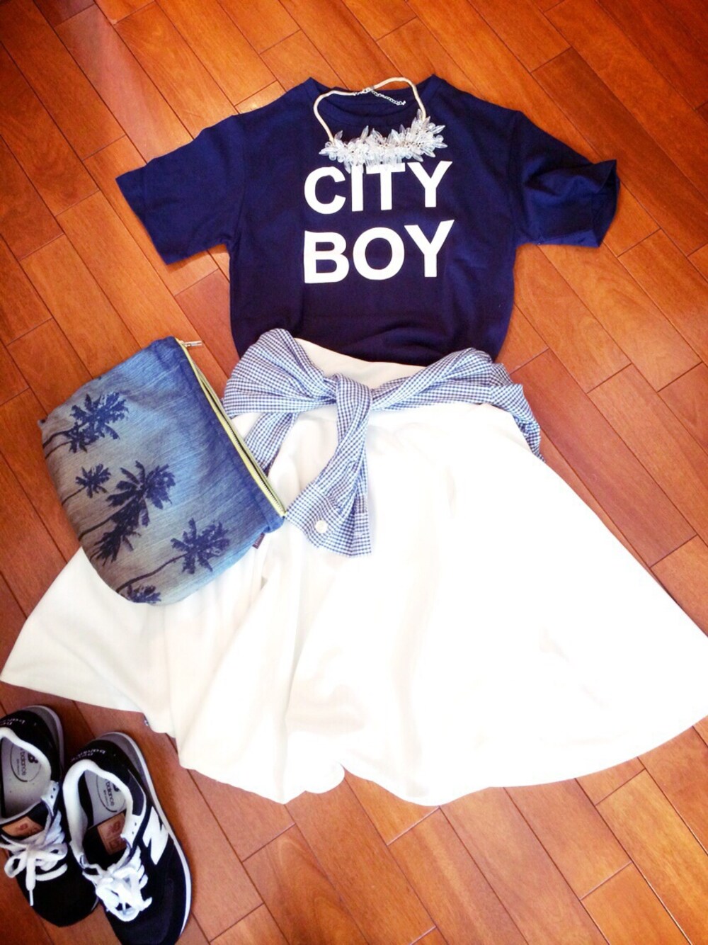 TODAY'S OUTFIT"♡ 久々のコーデup♡ Tシャツ ▷ todayful スカート ▷ 楽天 スニーカー ▷ニューバランス クラッチ ▷ yanuk ヤヌーク シャツ ▷UNIQLO