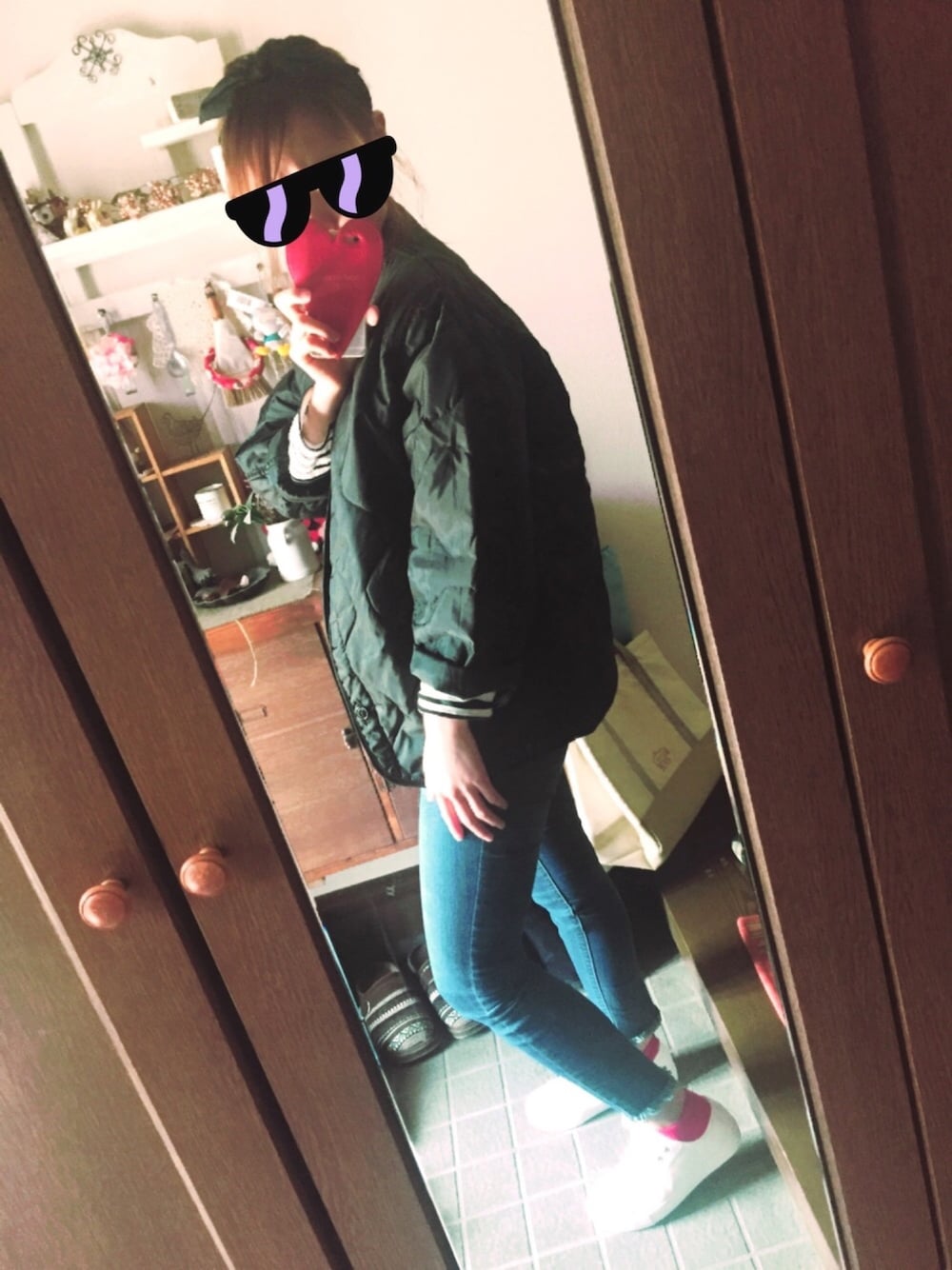 ライナージャケット初挑戦❤️️ 彼氏さんからおさがり♡ 胸板厚すぎて入らんかったらしい。笑