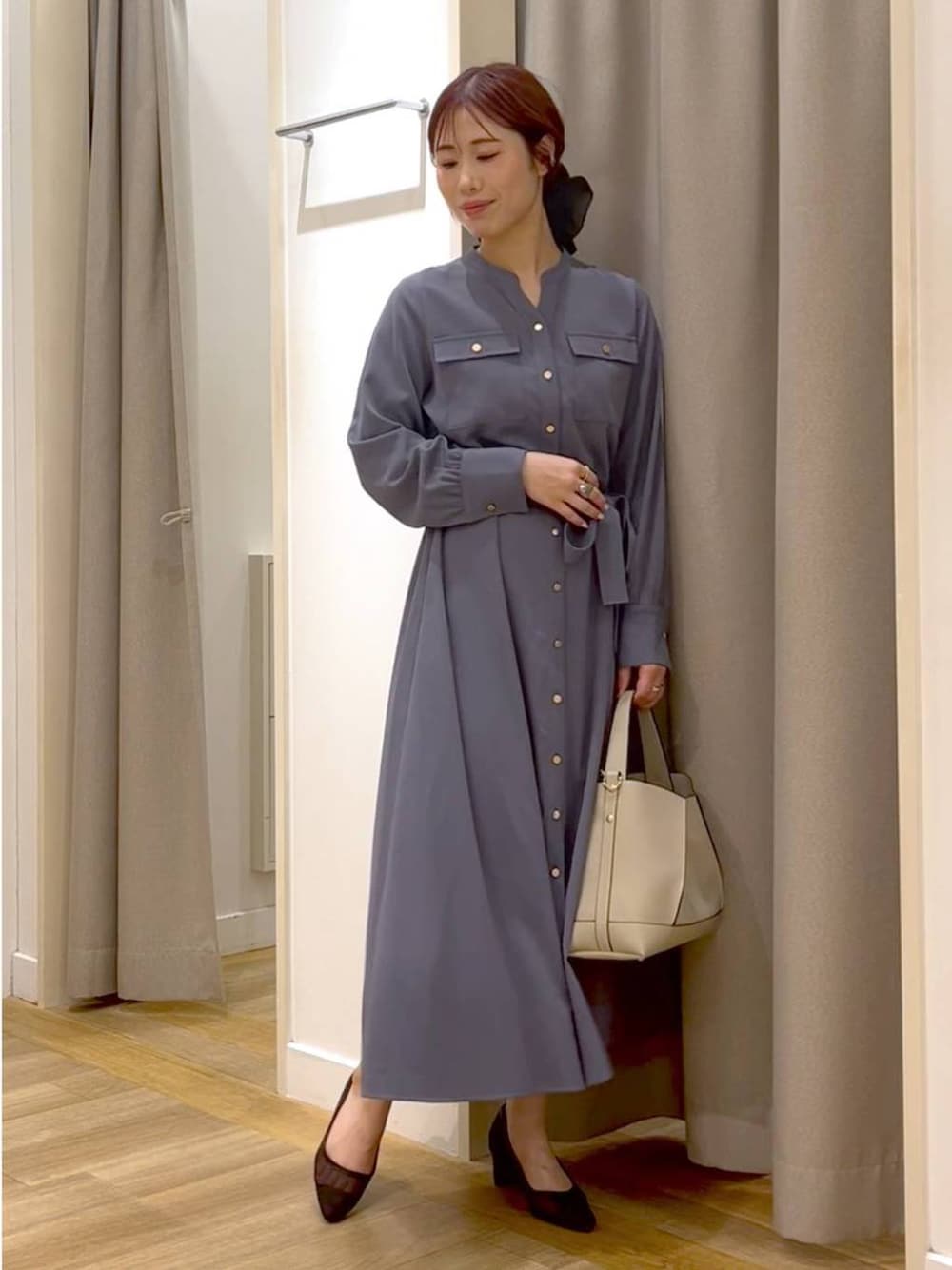 ◼︎ワンピース キンボタンが華やかな印象のワンピース! 落ち感のある上品な素材とシンプルなデザインなので オンオフで着用頂きやすいアイテムです◎