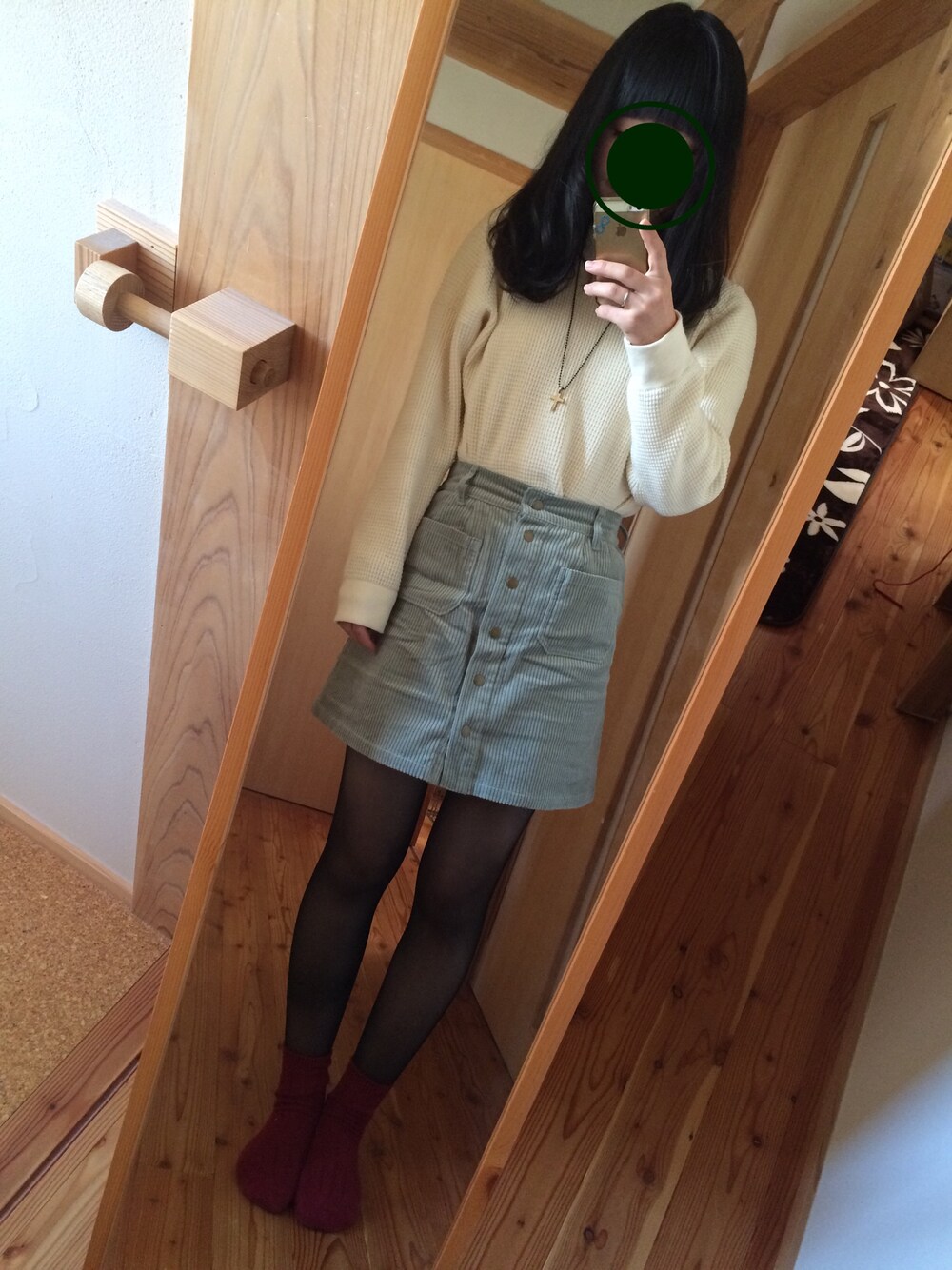 today's codeᙏ̤̫͚ 今日はお気に入りのサーマルっぽいニットに 昨日届いたコーデュロイのスカートに 秋口くらいに買ったOLD NAVYの Gジャンです〜(﹡ˆoˆ﹡) なんだか春っぽいカラーになりました! 早くあったかくなって😭