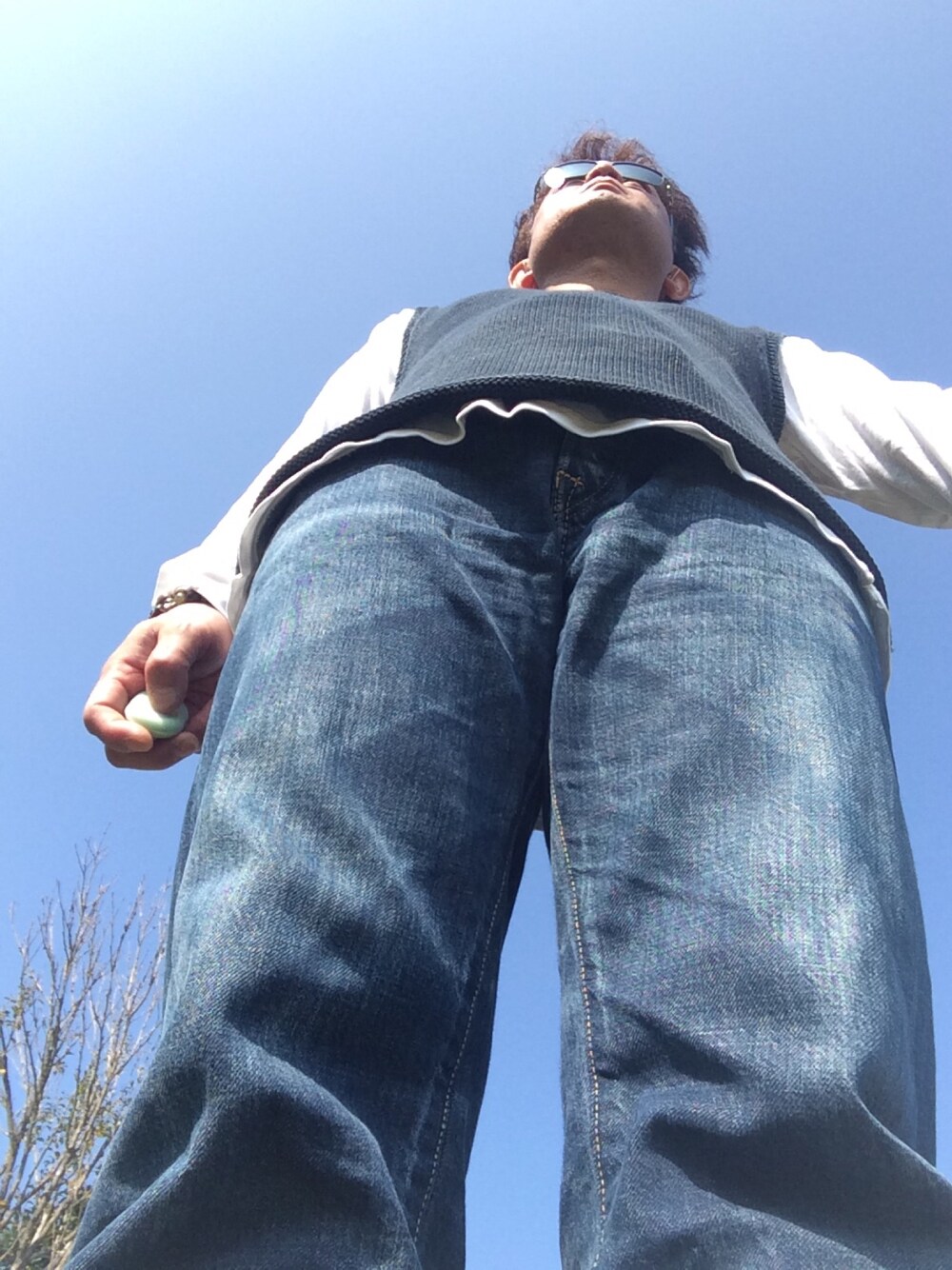 ブルー系のデニムパンツ、ブラック系のベスト、ホワイト系のシャツ/ブラウスを着用したメンズの秋コーディネートの1枚目の写真