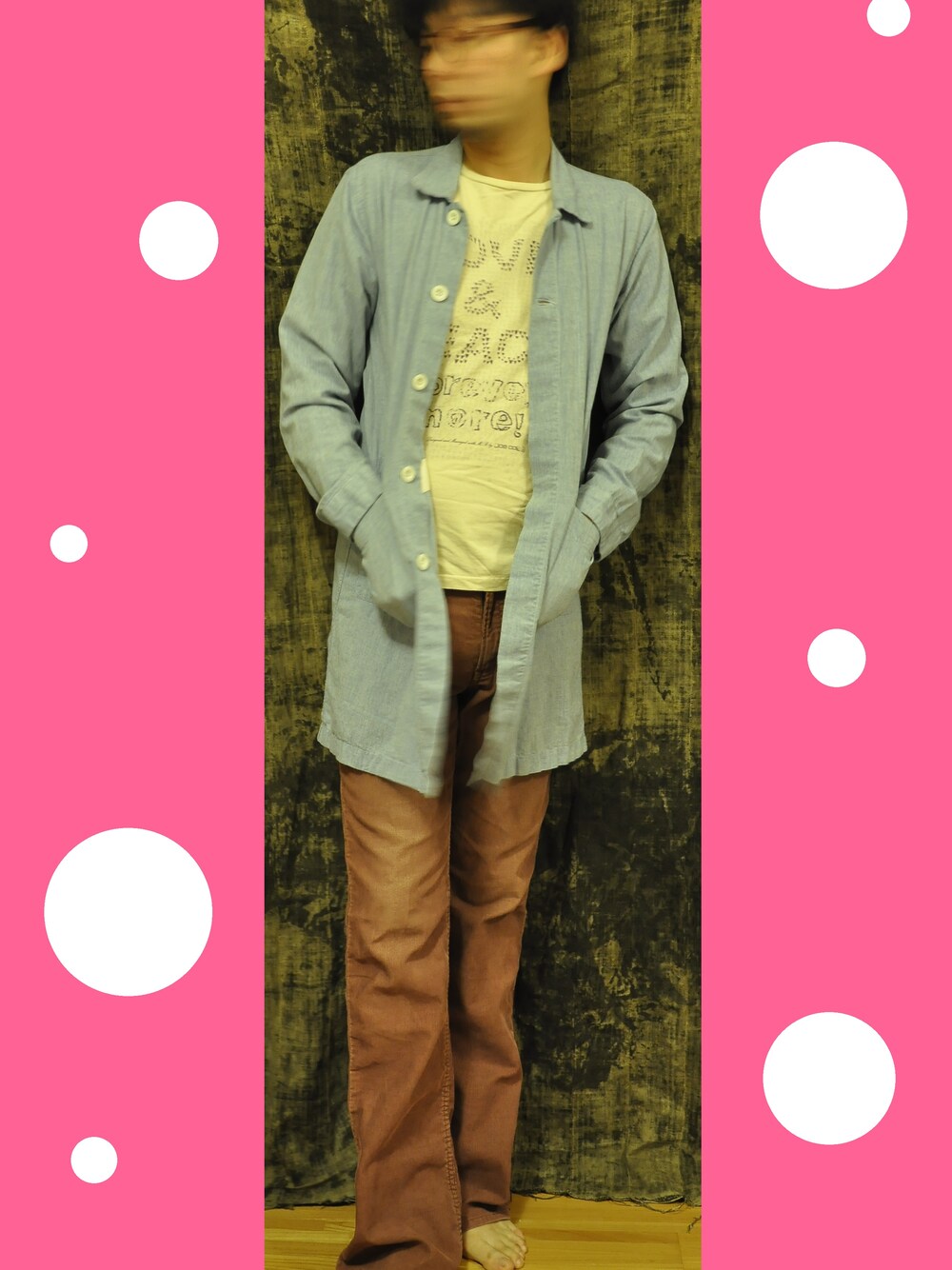 淡いブルーのロングシャツにモカレッドのフレアコーデュロイパンツ合わせてみました。 ブーツでも合わせて秋らしく~。