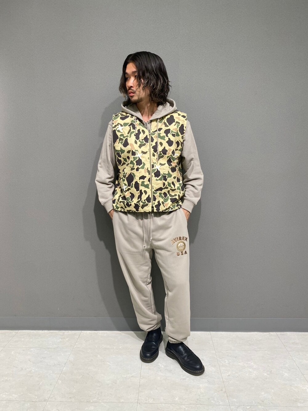 REIJI(AVIREX 渋谷)のベスト「REVERSIBLE DUCK CAMO VEST / リバーシブル ダックカモ ベスト / AVIREX / アヴィレックス」を使ったコーディネート