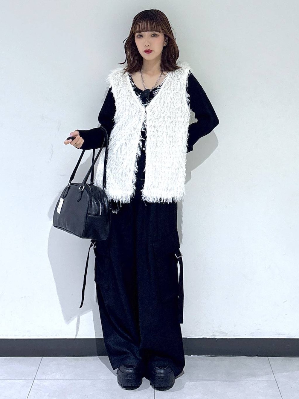 【ベスト】 🖤フェザーファーベスト 【トップス】 🖤ランダムリブ2WAYカーディガン 【ボトム】 🖤TRポケベルカーゴパンツ