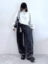 【トップス】 🖤バックロゴシシュウスウェット meiさん企画アイテム💭 Sサイズを着用しています!2サイズ展開なのでお好きな丈感を選んで頂けます!◎後ろのワンポイントのロゴ可愛すぎ!! 【ボトム】 🖤マルデニコクーンパンツ 伸縮性が抜群で履くとシルエットも綺麗にまとまります! サイドからみても広がりすぎずかっこいいシルエットで着れちゃいます!そのほかにも紫外線カット・接触冷感・ストレッチ性と機能抜群で年中履けちゃいます!