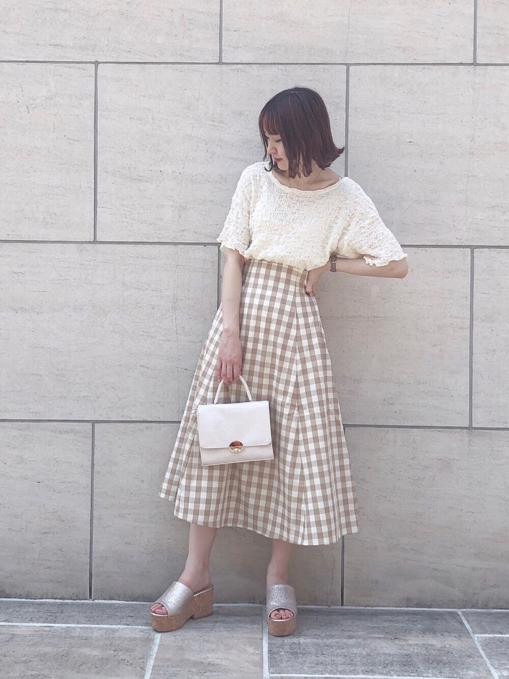 sae(one after another NICE CLAUP)のTシャツ/カットソー「バックリボンしぼしぼTシャツ」を使ったコーディネート