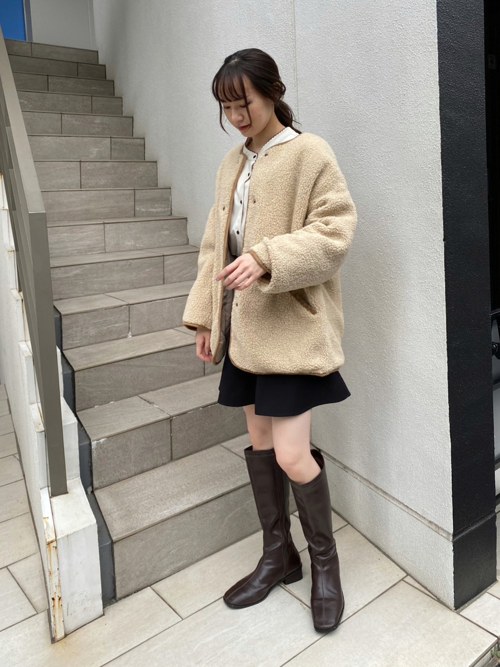 sae(one after another NICE CLAUP)のノーカラーコート「【ZOZO限定】リバーシブルで着こなし広がる!ノーカラーキルティングボアコート」を使ったコーディネート