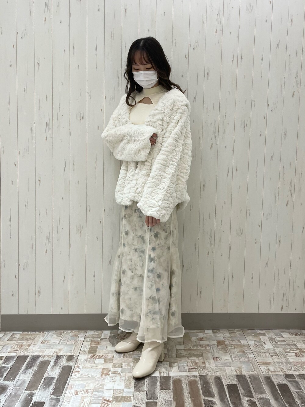 sae(one after another NICE CLAUP)のノーカラーコート「袖を外してベストにもなる/フェイクファーマルチWAYコート」を使ったコーディネート