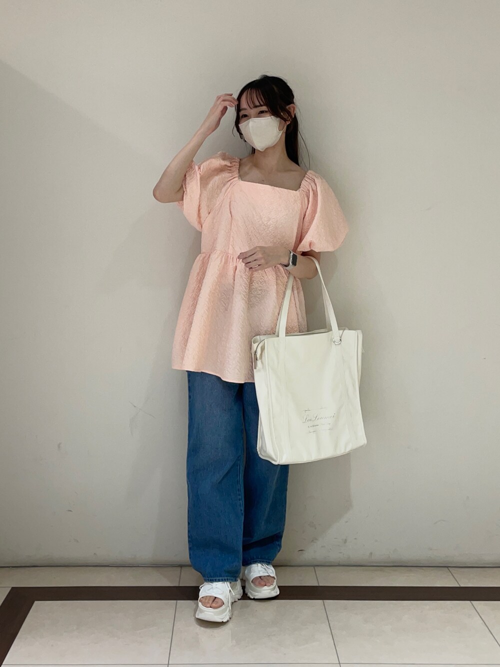sae(one after another NICE CLAUP)のチュニック「ぷくぷくジャガードチュニック/セットアップボトムあり」を使ったコーディネート