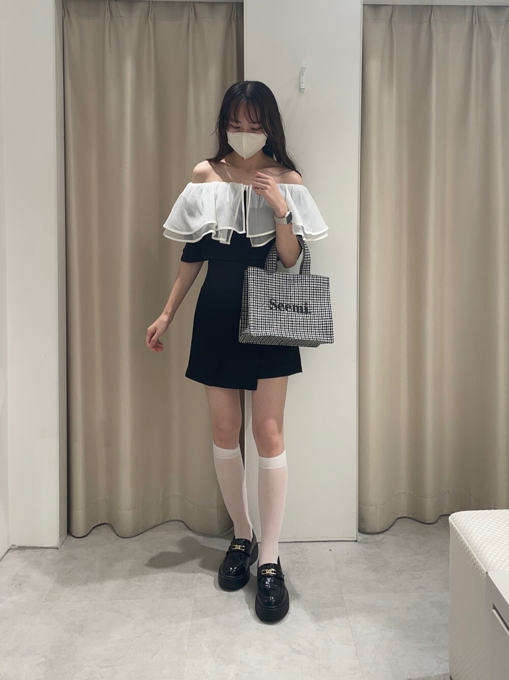 sae(one after another NICE CLAUP)のTシャツ/カットソー「2wayフリルテレコトップス」を使ったコーディネート