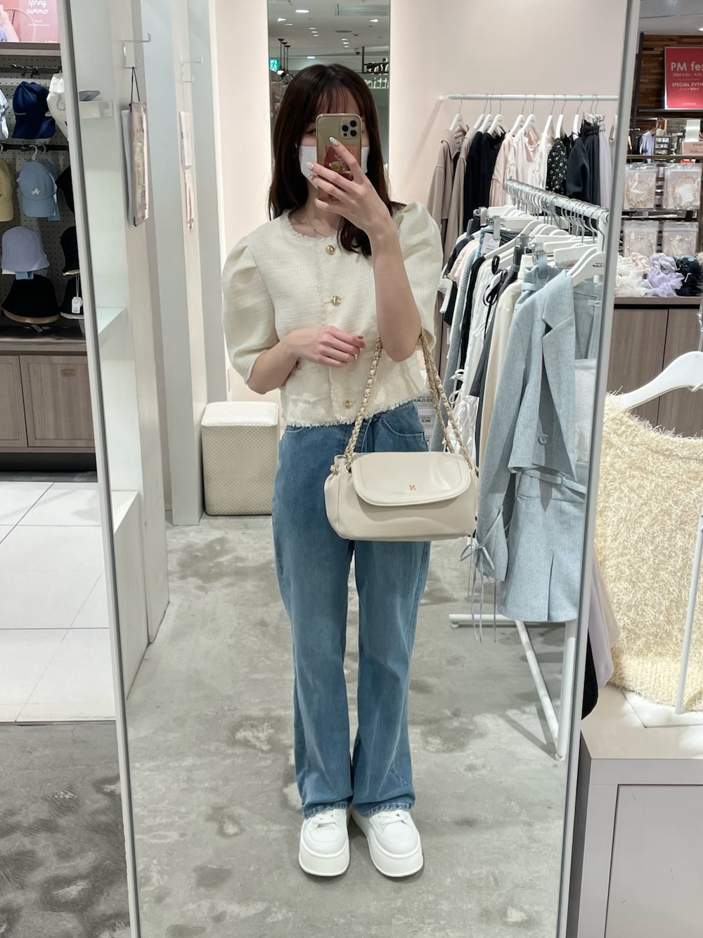 sae(one after another NICE CLAUP)のノーカラージャケット「【人気シリーズ】半袖ツイードジャケット」を使ったコーディネート