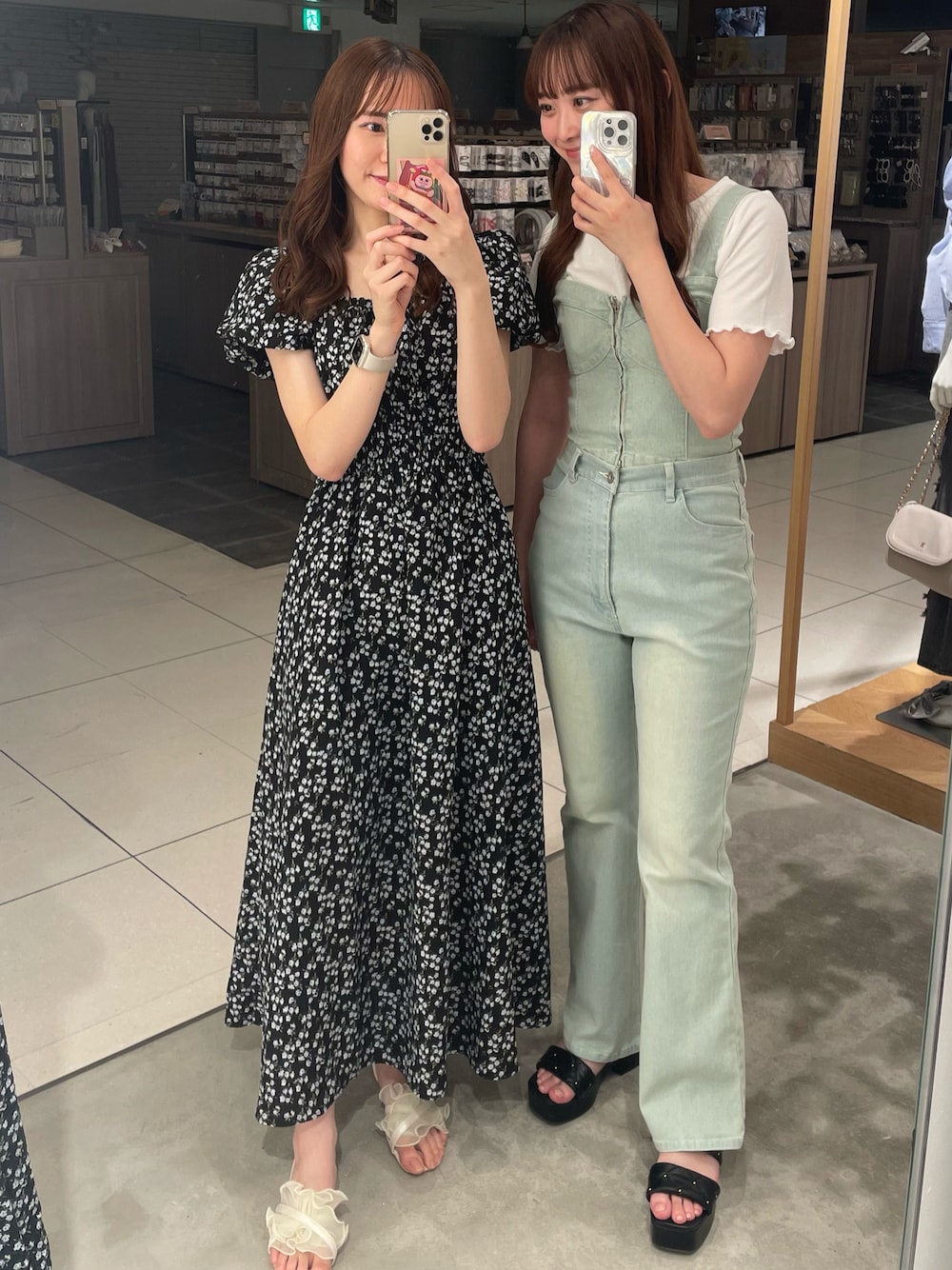 sae(one after another NICE CLAUP)のワンピース「シャーリングパフスリーブワンピース【S/Mサイズ展開】」を使ったコーディネート