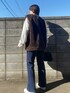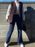 コウのシャツ/ブラウス「ワンポイント刺繍起毛素材ストライプ&チェック柄オーバーシャツ」を使ったコーディネート
