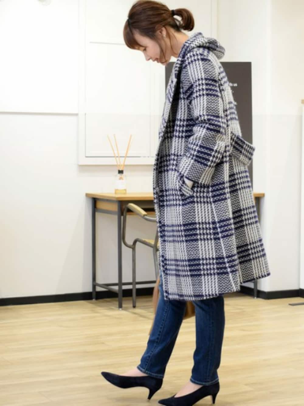 チェックのコートは羽織るだけで可愛いコーデになりますね♥️