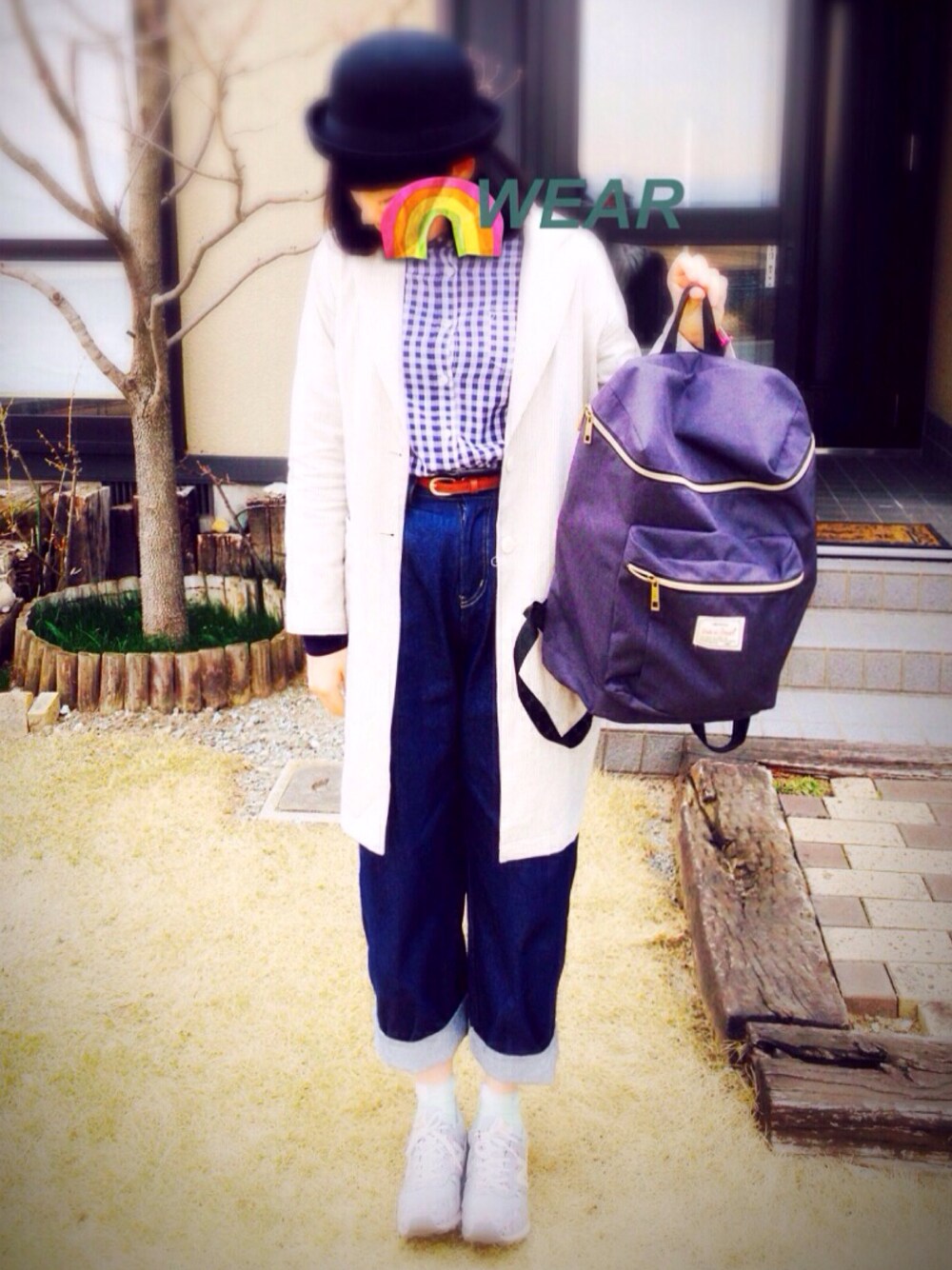 春らしいギンガムチェックのシャツがアクセントに。。 ウエスト高めにスタイルアップ。。! 流行を掴みながら、脚とお尻を隠せる体系カバーコーデの完成。。 前投稿したのとすごく似てる。。 まあ、いっか。、。