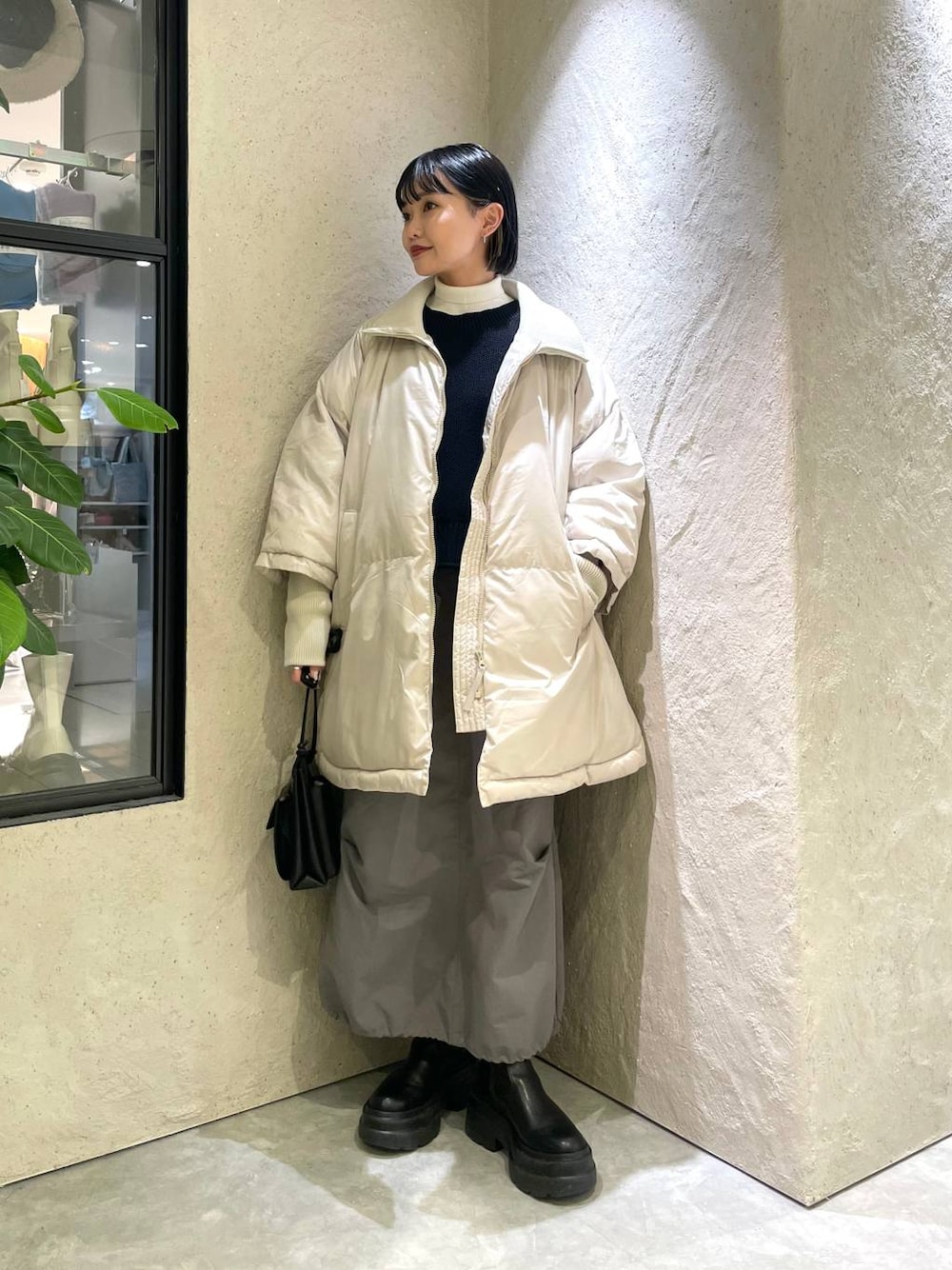 ☁️コーデのおすすめポイント☁️  ̄ ̄ ̄ ̄ ̄ ̄ ̄ ̄ ̄ ̄ ̄ ̄ ̄ ̄ ̄ 今週からお値下げしたポンチョ型アウター 手首と首周りがリブデザインなのでメリハリのつく羽織りに◎ サイドにはスリットにも出来るスナップボタン付きなので調節可能です! ポンチョで少し広がりがあるので中は細身のタイトスカート×ショートニットで合わせました◎ モノトーンで色を合わせてバランスよく♡