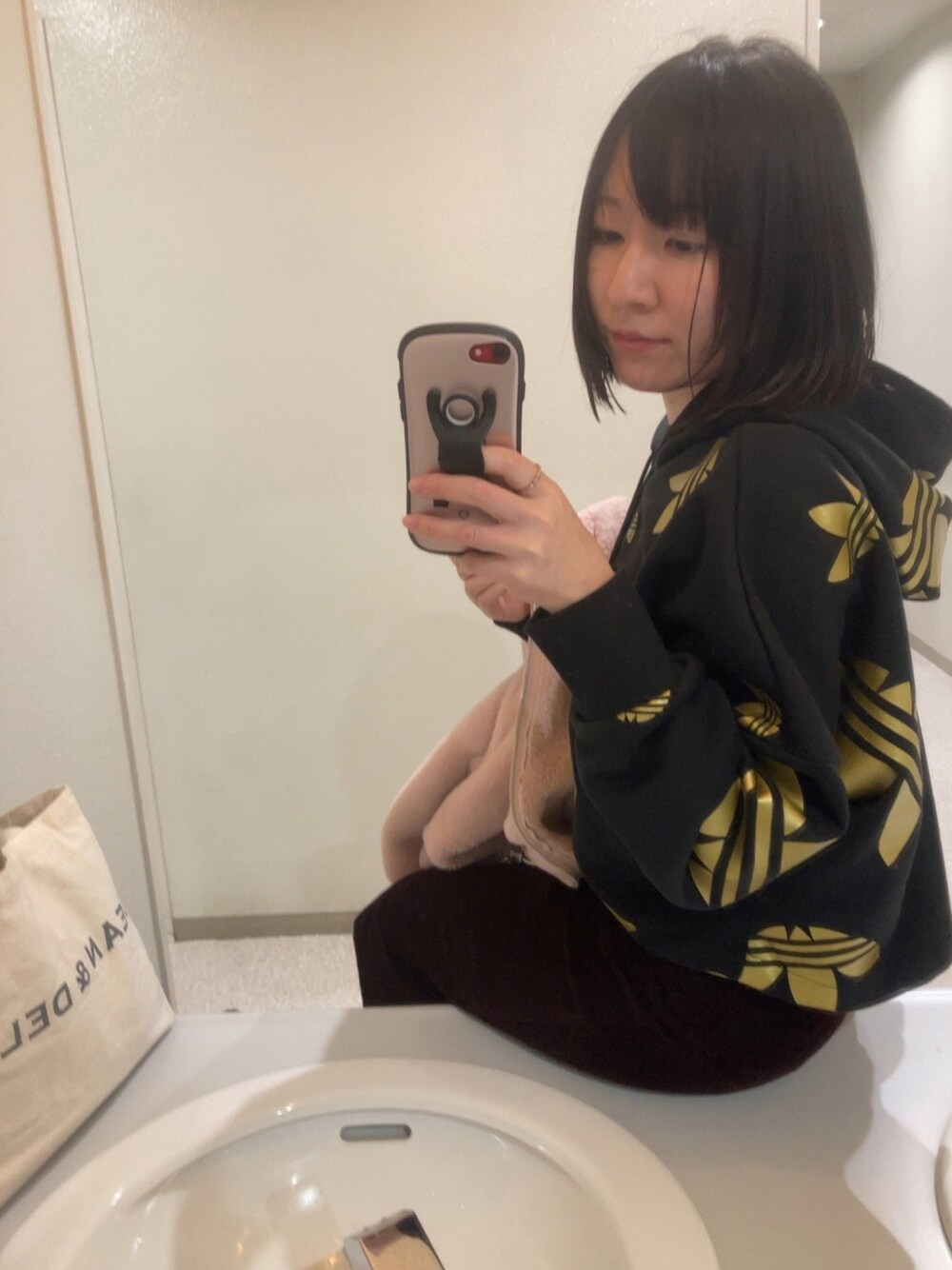 ささみのパーカー「ラージ ロゴ クロップドパーカー [LRG LOGO C-HOOD] アディダスオリジナルス」を使ったコーディネート