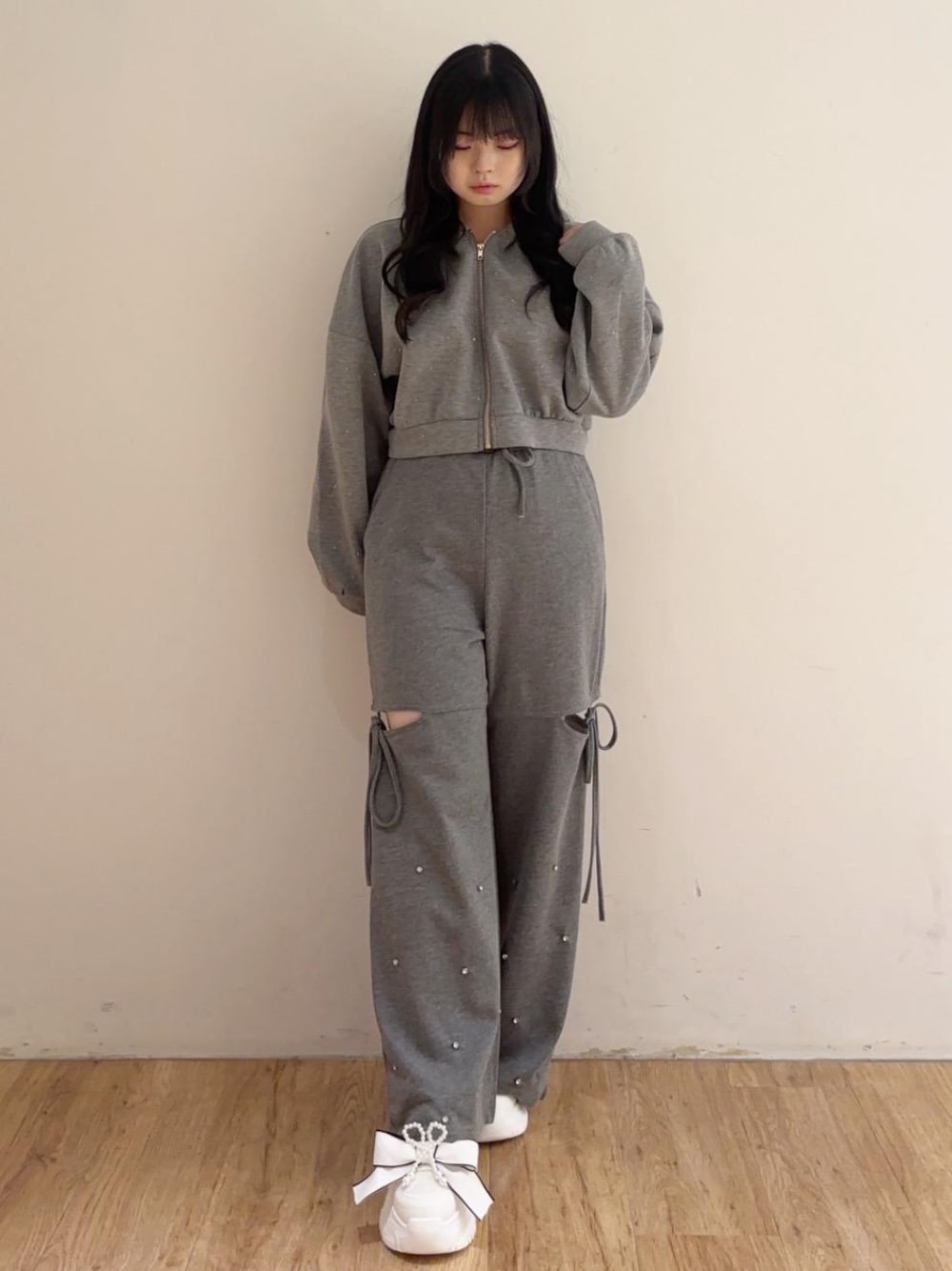 ラインストーンが散りばめられたカジュアルパーカーに 大きなビジューが可愛いスウェット素材のボトムス、 大きなリボンがチャームポイントなキラキラスニーカーのコーデです❤︎ 着ただけでカジュアル可愛いをくれるキラキラパーカー! スウェット素材になっているので動きやすさもしっかり👍 薄手のインナーに合わせてあげてラフなコーデにも! ショート丈なので全体がパキッとして見えます✨ 人気のスリットにビジューのついたデザインのボトムス! ラフカジュアルでしっかり可愛さを忘れないデザインです! 動きやすさもしっかりとあって息抜きコーデにぴったり🙌 大きなリボンがチャームポイントでキラキラなスニーカー! 厚底で身長盛りもしっかりできる万能アイテムです! クッションが柔らかいので歩きやすさもかなりいいです👍 ラフカジュアルな空港コーデ感の雰囲気を作りたい方に ぴったりのコーデになります! ぜひチェックしてみてください❤︎