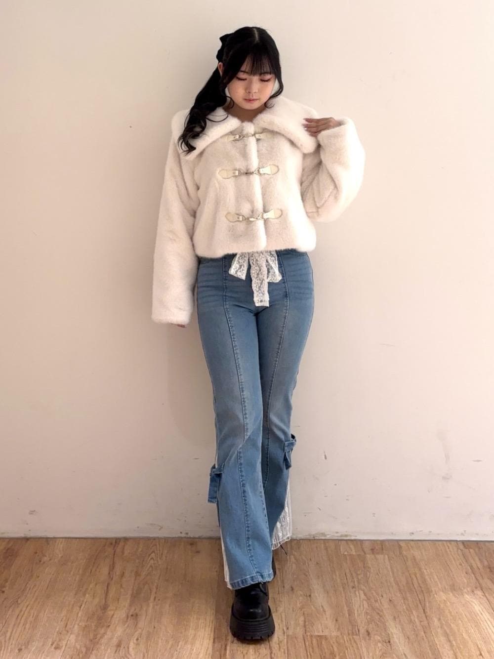 sae(MAJESTIC LEGON )のその他アウター「ビット付きフワフワショートコート」を使ったコーディネート
