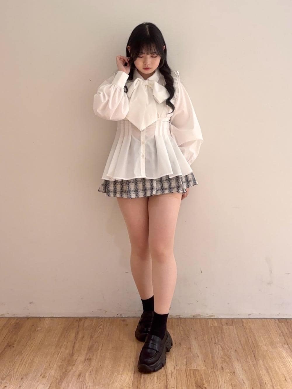胸元の大きなリボンに方のフリルで可愛いブラウスに ツイード生地でパッキリさせてくれるミニスカパン、 スニーカーのような履き心地のローファーのコーデです❤︎ 胸元の大きなリボンがチャームポイント🎀✨ 肩のフリル部分で上半身の甘々感をしっかりプラス! 体のラインに沿ってくれるデザインで着痩せ効果も! 裾がフリルになるのでまるでワンピースみたいになります! 可愛いの定番なツイード生地のミニスカパン! 硬めの生地でパッキリとしたビジュアルになるので 腰回りふんわりさせたくない方にはぴったりなデザイン✨ ちょっとショートパンツが見えるトレンドデザインです! スニーカーのソールの形と同じの履き心地抜群ローファー! ビジュアルはローファーと似て初めての挑戦にぴったり! 重さも軽くて歩きやすさ抜群になってます! 可愛さを詰め込んだブラウスを用いて着こなしたい方に ぴったりのコーデになっております! ぜひチェックしてみてください❤︎