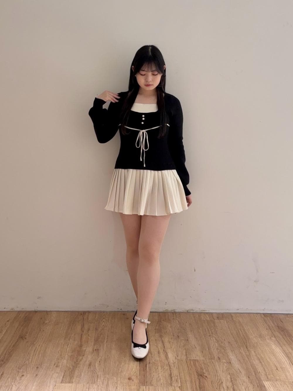 シンプルなデザインにアクセントカラーが目を惹くワンピに キルティングにワンポイントリボンが可愛いパンプスのコーデです❤︎ スタイルにフィットするシルエットのミニワンピース! アクセントカラーのプリーツがとってもキュート💕 胸下のリボンが愛らしさをアップしてくれるデザイン♪ 一枚でパッと着れる手軽さも魅力のアイテムです! キルティング生地がエレガントな印象をくれるパンプス! ワンポイントとしてリボンとハートのビジューが可愛い🫶 ヒールも低めで歩きやすさもしっかりと👍✨ シンプルだけど華やかな雰囲気を作ってくれます🙌 カジュアルながらも可愛らしさを表現したい方に ぴったりのコーデになっております! ぜひチェックしてみてください❤︎