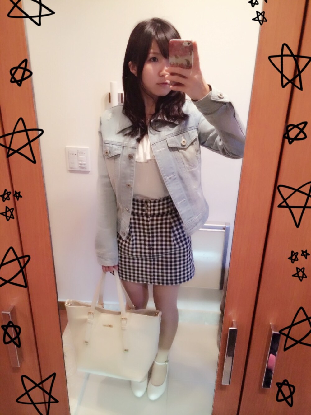 タイトスカート : ハニーズ デニムジャケット : CECIL McBEE プチプラコーデ🎵 ギンガムチェックはやっぱり かわいい(๑>◡<๑) ♡