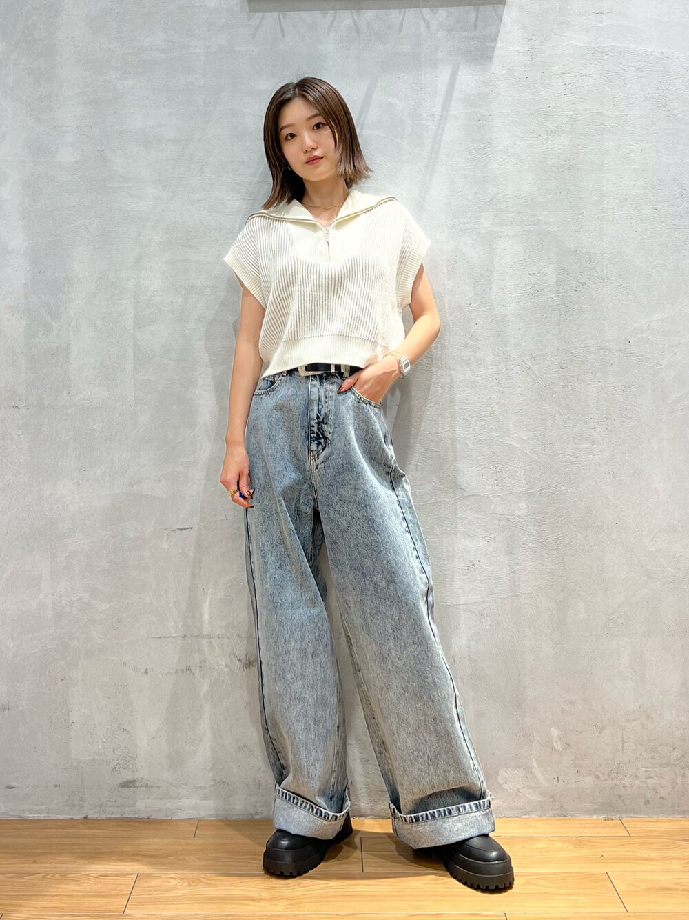 サエ(PAGEBOY 本部)のニット/セーター「CORE / ZIPショートニットプルオーバー」を使ったコーディネート