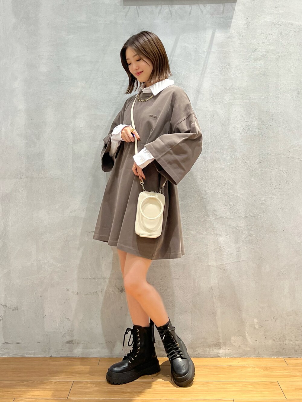 LIMコーデ🤎 あえてLサイズのTシャツをワンピース風に着て、シャツをレイヤード するのとても可愛いですよ✨✨