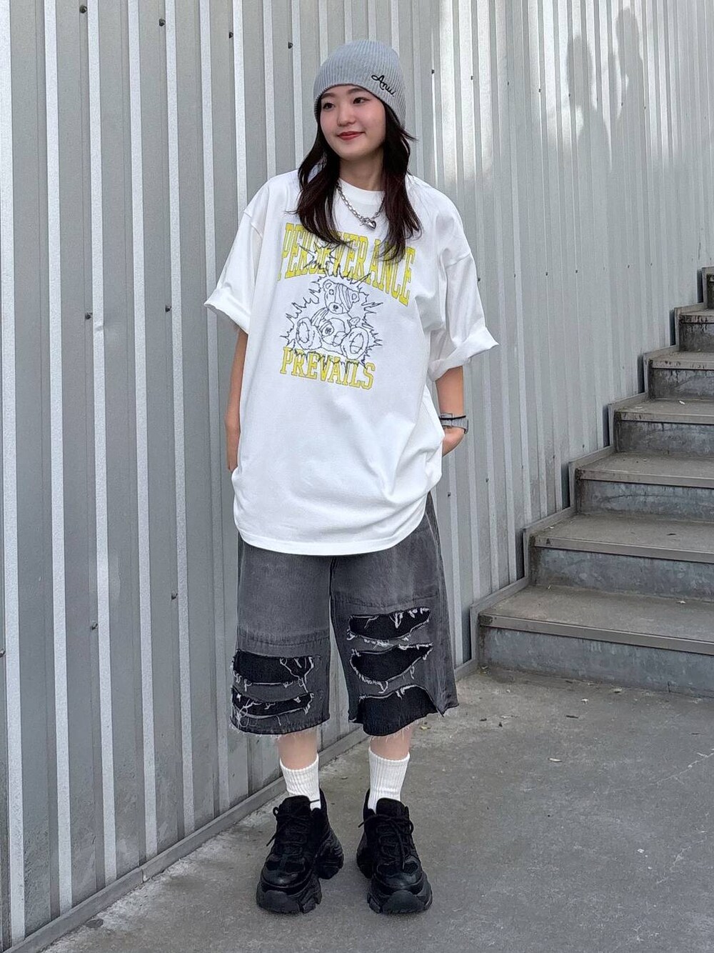サエ(PAGEBOY 本部)のスニーカー「プラットチャンキースニーカー【3サイズ展開・軽量】」を使ったコーディネート