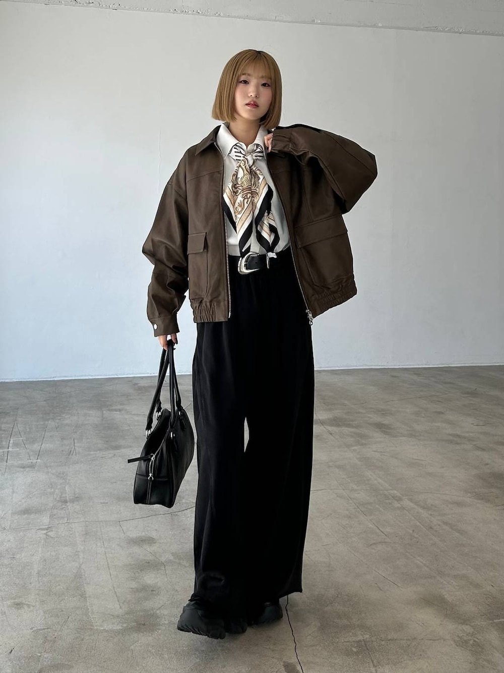 大人クラシックスタイル🥾✨ 【ブルゾン】 Sサイズはすっきりとした着丈で、スタイルアップ✨ トレンドのスカーフを巻いてマニッシュな印象に◎ 【スウェットパンツ】 大人気のスウェットパンツが再入荷! 軽くで柔らかい穿き心地で、とにかく脚長効果抜群! 穿くだけで着痩せします◎