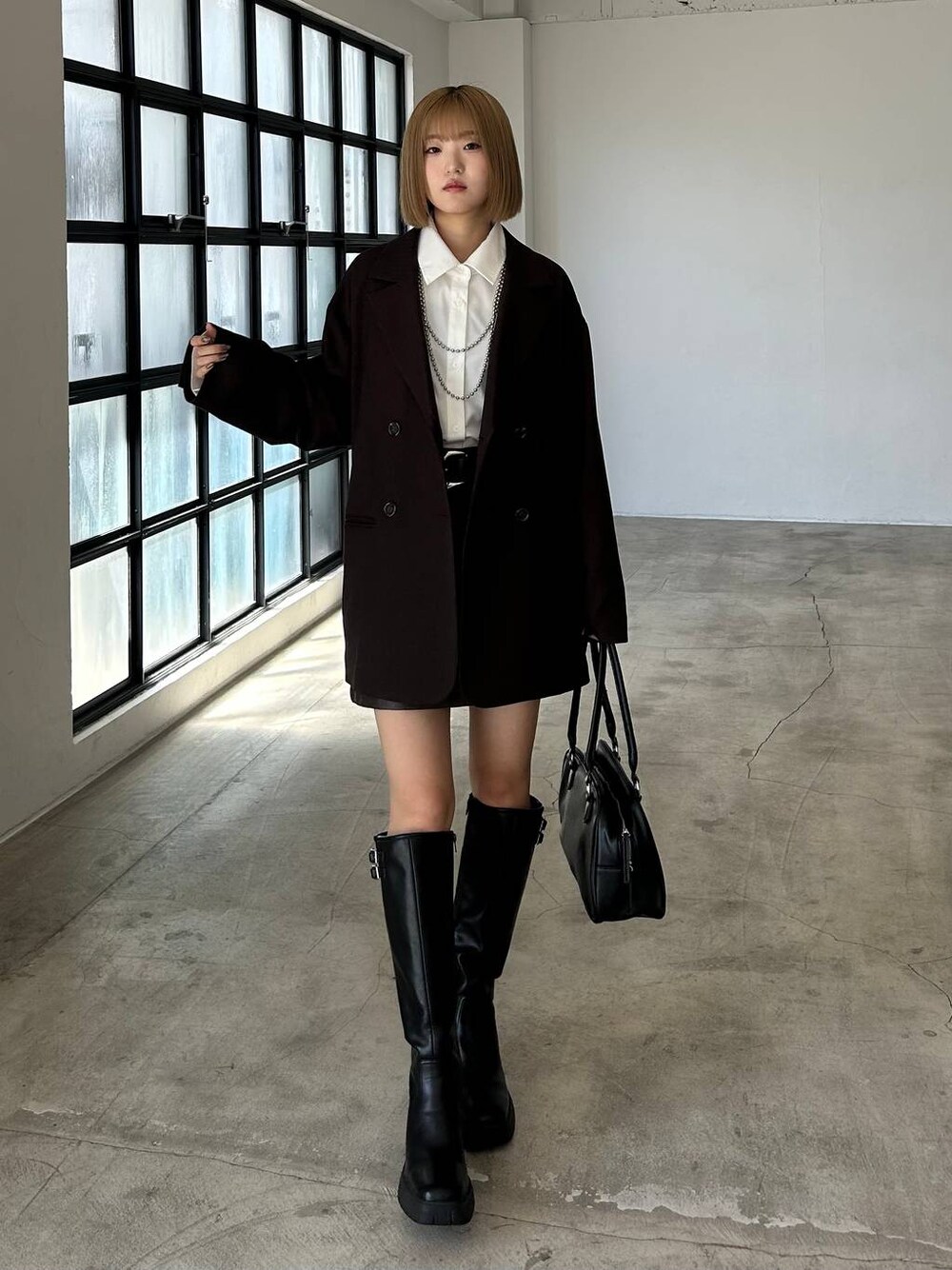 秋のジャケットスタイル🍂 【ジャケット】 後ろにバックルがついた、ヘリンボーンジャケット。 軽くて分厚すぎないので、中にも着込めてカジュアルにも使えました◎ 【ボトム】 キレイめに合わせたかったので、レザーをチョイス✨ 程よいだけ感のミニスカートで、脚の細見えも叶うよ!
