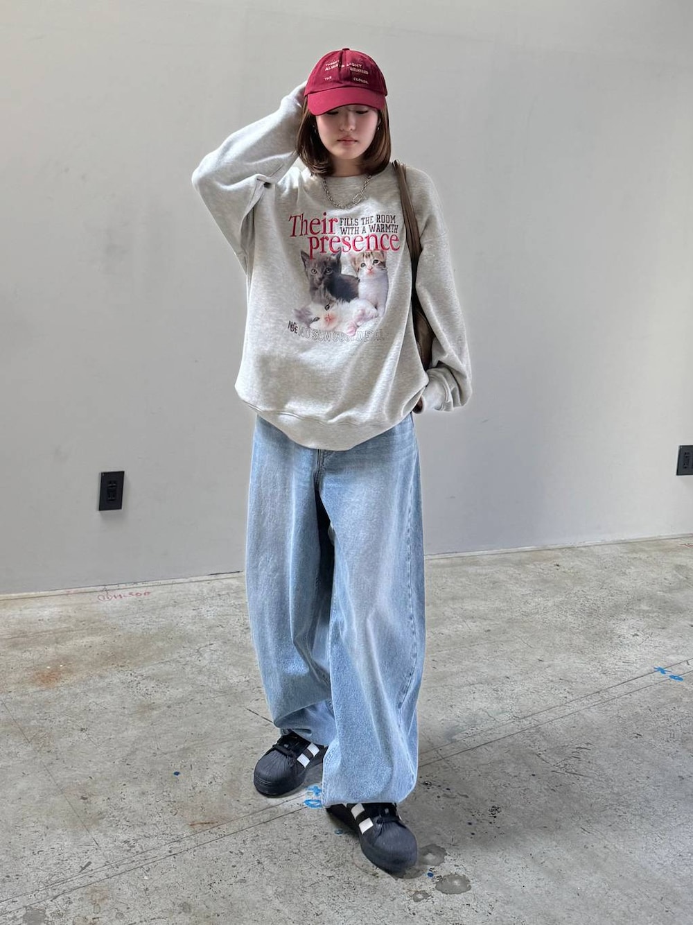 猫スウェット🐈⬛ 3匹の子猫がカワイイプリントスウェット オーバーサイズでゆったり着れる◎ 春はデニム合わせがおすすめ☘️