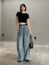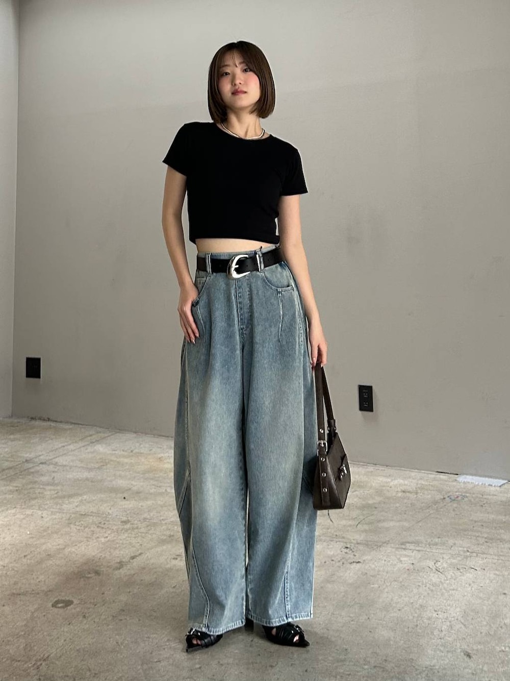 夏のシンプルコーデ✨ 【トップス】 シンプルなチビTですが、汗じみ防止加工がされていて、 汗かく夏も快適に過ごせるTシャツ! 1枚持っておけば夏安心😮💨 【デニム】 マルデニシリーズの新色! 少し黄味かかったブルーで夏らしいカラーです! サイズはMサイズです!