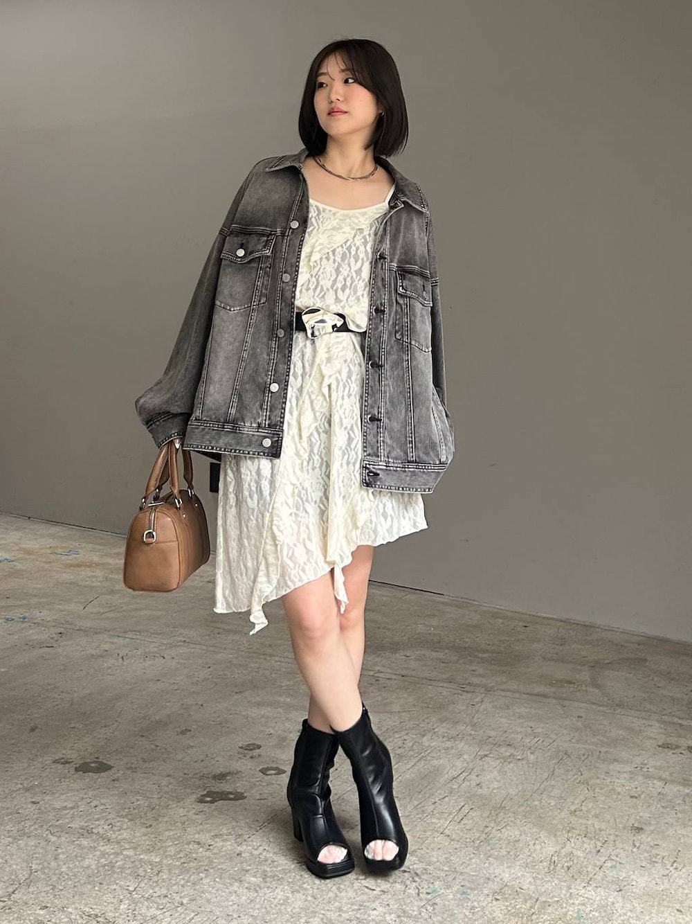 レースキャミワンピコーデ 【ワンピース】 レースが春らしくて可愛い! フリンジがついてて、1枚でサマになるよ! 【アウター】 軽くて春のお出かけにぴったりなGジャン ゆったり着られて、レイヤードしやすい◎