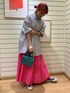 ハートの刺繍が左胸に入っていて、ワンポイントで可愛いです!生地もしっかりしているので、ペラペラに見えないですよ! ピンクをコーディネートに取り入れたいけど、勇気がいる!という方はまずはスカートやパンツから取り入れてみてはいかがですか!!ひらひらと動くスカートが可愛いです🌍💖