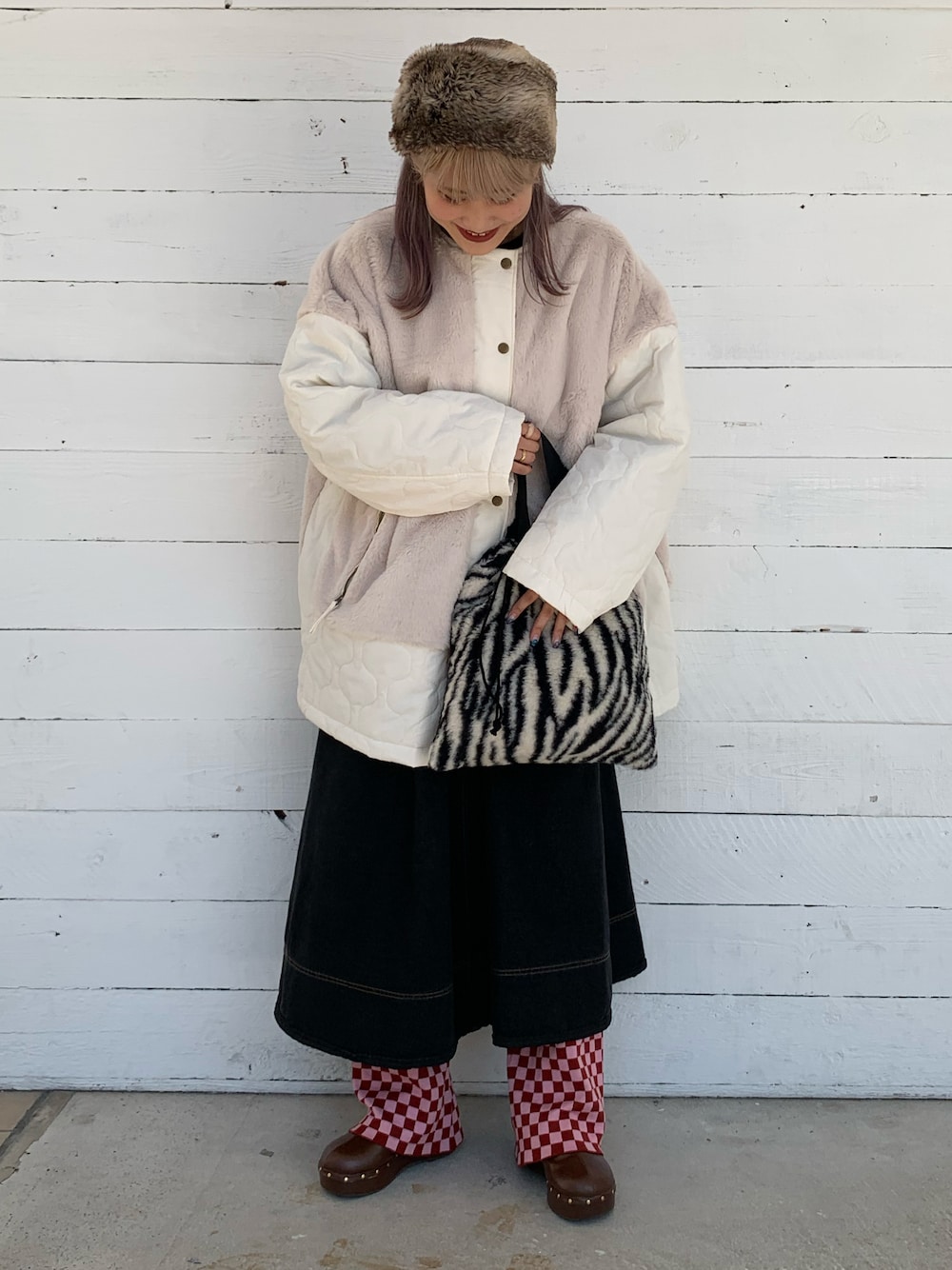 キルティングファーコート! 店頭でも今朝1番に売れていた大人気のコートです🤍もこもことキルティングの組み合わせがとってもかわいいです!サイズも36.38で展開しているのも嬉しいです!! ワンピースはリアルバイしているのでたくさん着回しています😂スカートみたいに着れるのはワンピースのいいところですね!! ファーの帽子とバッグで合わせてみました! Instagramも更新しております! @mainichiaripeii