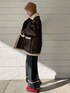 可愛いアウターがお店にも入荷しました! こちらのコートはレザーとボアのミックスでトレンド感が抜群です🤍 クリスマスコーデの主役にもなりそうなので沢山着たいです!! 中はボアになっているのでとっても暖かいです!❤️🔥 パンツは160センチで36サイズを着用しましたが、38サイズでも丈感は良さそうでした! スブを履いて足元もポカポカですー!! 23.5を普段は履いていて今回は0サイズを履いております!!