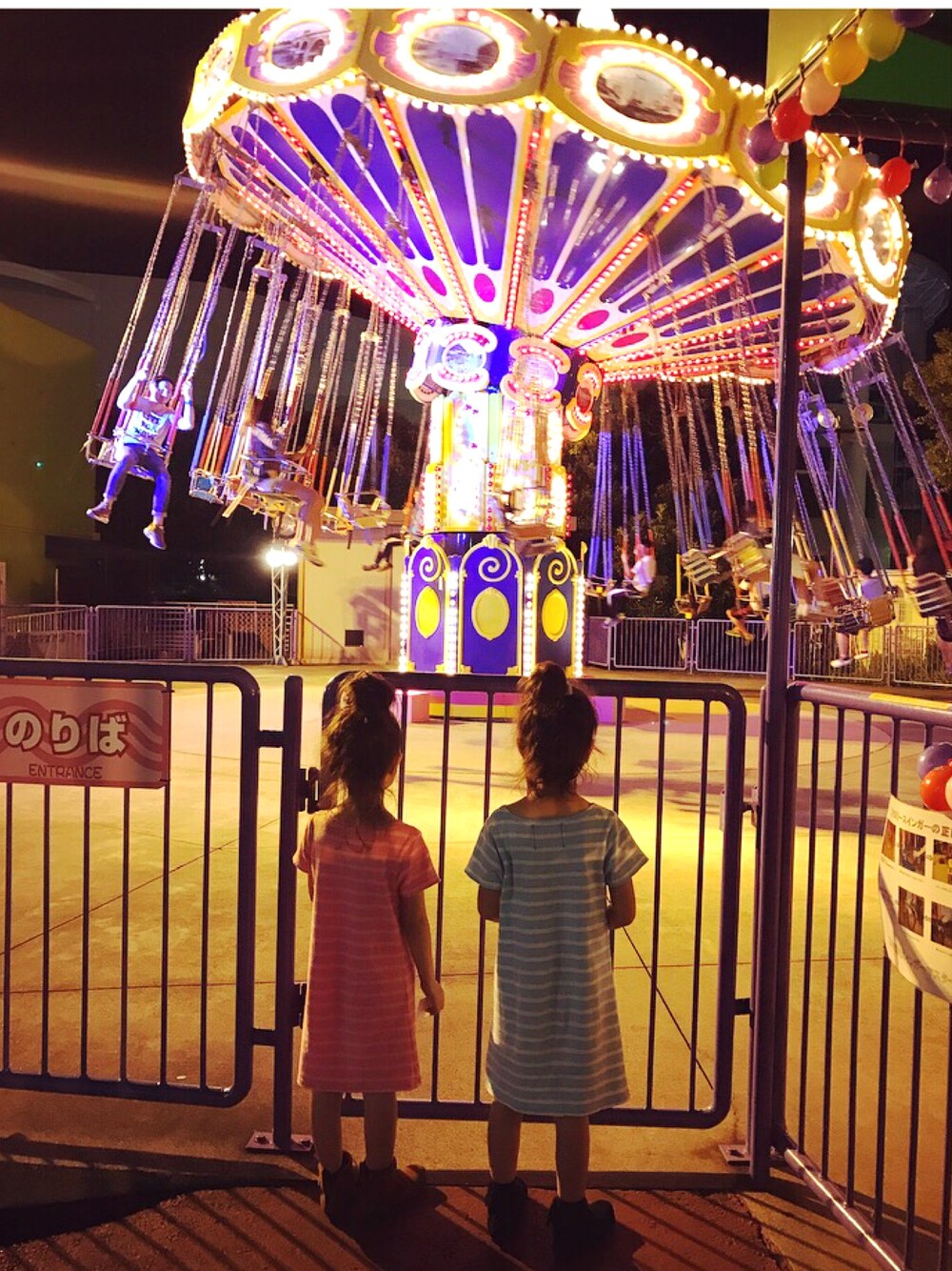 夜の水族館からの 夜の遊園地へ 秋を少しだけ取り入れて ミネトンカ履きました。