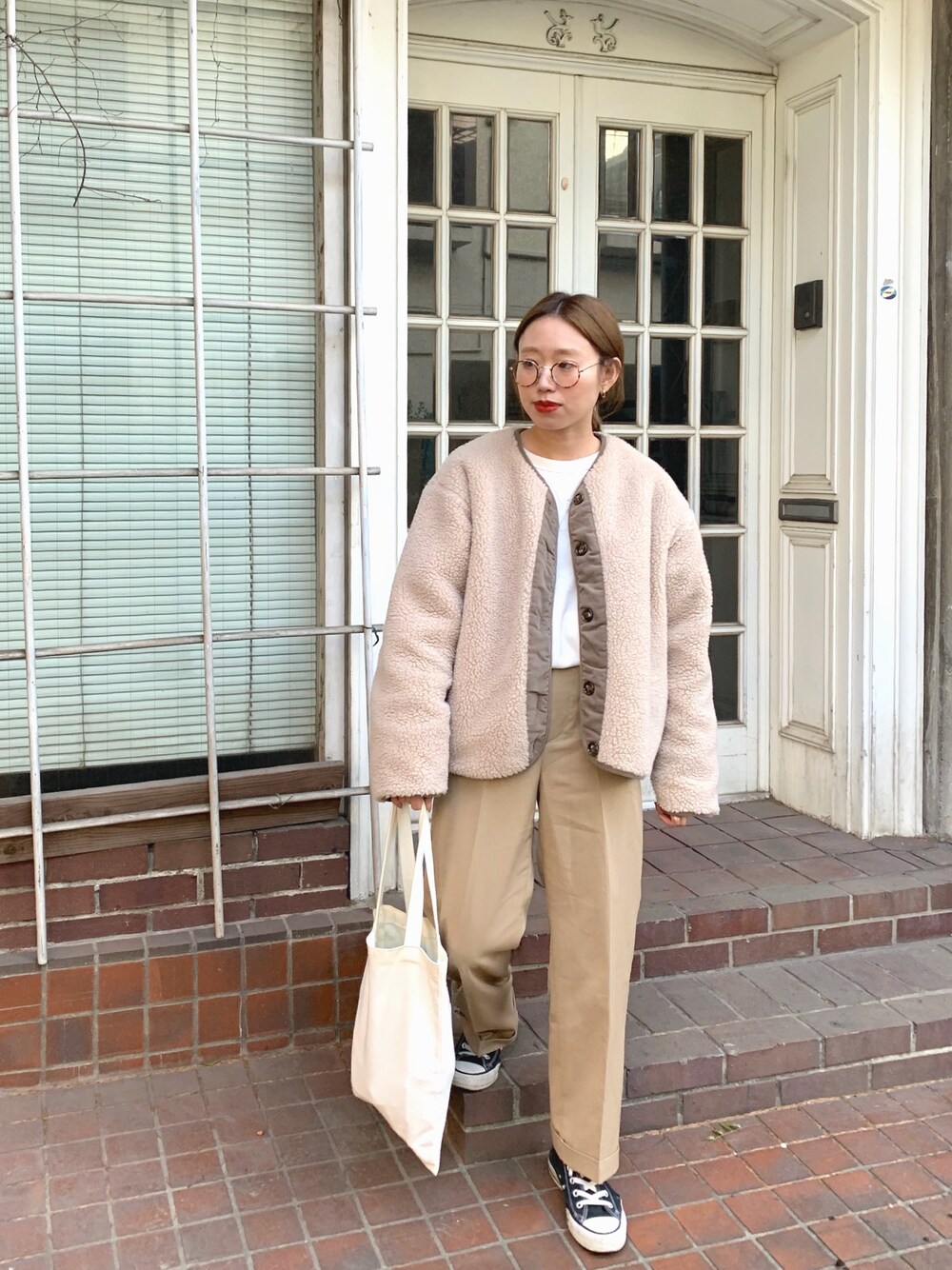 りっぴーのその他アウター「ラウンドネックボタンボアジャケット」を使ったコーディネート
